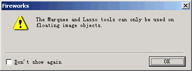如果你在矢量编辑模式中使用选区、魔术棒和套索工具,Fireworks会出现无法应用的提示,用惯Photoshop的用户很容易产生这类错误。