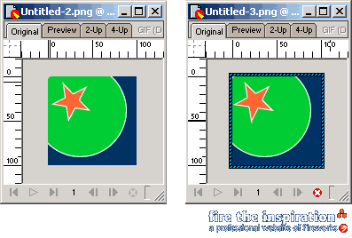 那么,在2种编辑模式下编辑的对象究竟有什么区别呢?我们来看一个例子,还是刚才的2幅图,他们虽然看起来一样,但一个是矢量对象,一个已经被转换成了位图,我在上面画了2颗同样的星。