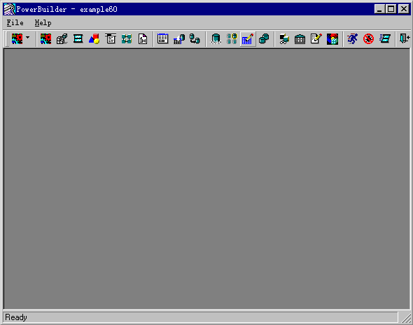 PowerBuilder 5.0图标,就可以启动PowerBuilder,图2-1显示的就是PowerBuilder的初始界面,可以看出,PowerBuilder的界面同其它WINDOWS 应用程序的界面是类似的,也是由菜单、工具条、工作区和状态条等部件组成。PowerBuilder工具条上的一个个图标被称为画板按钮,按下这些按钮可以打开相应的画板。利用这些画板我们可以创建各种对象,应用到PowerBuilder开发的应用程序中去。如果你对某个画板按钮的功能不太清楚,将鼠标放在这个按钮上不动,系统会在画板按钮的旁边显示一条简短的语句,说明此画板按钮的功能,另外也可以从按钮上的图标来识别它的功能。图