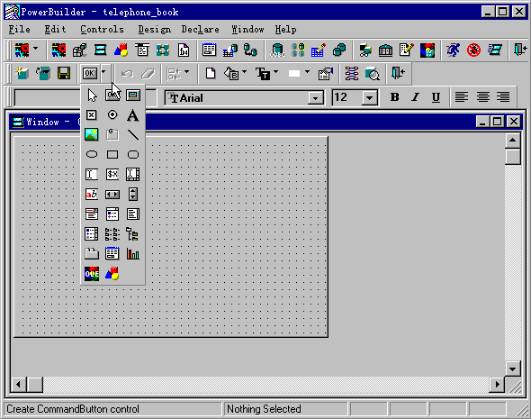 TELEPHONE-WINDOW1,这个明字将用于以后的程序中,输好后单击OK按钮,可以发现窗口的标题已变成刚输入的名字,到此为止第一个窗口就设计好了。图