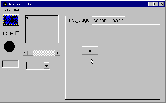 控件框中有一个是TAB控件,这个控件可以包含若干个标签页,标签页类似一个窗口,一个标签页可以包含许多的控件,刚才我们一直在使用的控件属性对话框就是一个TAB控件的典型例子。下面在窗口中放入一个TAB控件,可以看出TAB控件上已经有一个名为NONE的标签,鼠标右键单击TAB控件的中间工作区,在弹出的菜单中选择PROPERTIES菜单项,把TAB TEXT一栏的值改为FIRST-PAGE,然后单击OK按钮,可以看出标签上的值已经变成了FIRST-PAGE,鼠标右击FIRST-PAGE标签的右边空白区,在弹出的菜单中选择INSERT TABPAGE菜单项,系统就自动在FRIST-PAGE标签的右边添加了一个名为NONE的标签,用和前面类似的方法可以把新添加的标签的名字改为SECOND-PAGE 。我们可以在标签的工作区中放入各种控件,比如这里选中FIRST-PAGE标签,然后在控件框中选中COMMANDBUTTON控件,把它放入FIRST-PAGE标签的工作区中,放好后先单击SECOND-PAGE标签,再在控件框中选中一个复选框控件放入SECOND-PAGE标签的工作区中,然后单击PAINTERBAR工具条上的PREVIEW按钮来预览窗口(图6-8)。单击预览窗口中TAB控件的SECOND-PAGE标签,可以发现工作区上面有一个复选框控件,再单击FIRST-PAGE标签,可以看出工作区中的控件变成了命令按钮。这两个控件正是我们分别放在两个标签上的。