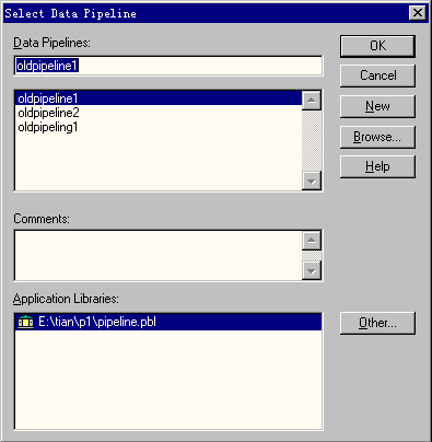 对话框的列表框里面枚举了在选中的库文件中所有的已经定义的数据管道。我们希望新建一个数据管道,单击对话框中的 NEW 按钮,进入 NEW DATA PIPELINE 对话框(图8-3)。