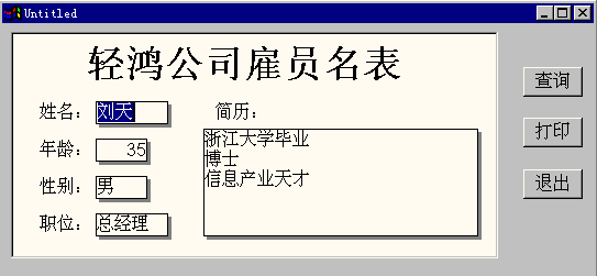 关闭所有打开的画板,运行这段程序。单击打印按钮,就可以打印出刚才设计的报表了。如图9-15。