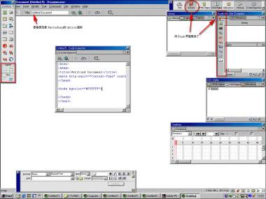 3进行编写乍一看这个界面和Dreamweaver3是没有区别的。事实上仔细观察还是有很多不同的地方做出了改进。这就是Macromedia的高明之处,让你在熟悉的环境中无形的接受了新界面。呵呵,就象一首流行歌曲里面唱的《最熟悉的陌生人》?:P此外仔细的读者会发现Dreamteam系列也越来越“相像”了不少界面元素都融合统一了起来。下面圈出了部分的新界面。大家看看还能发现什么?:))