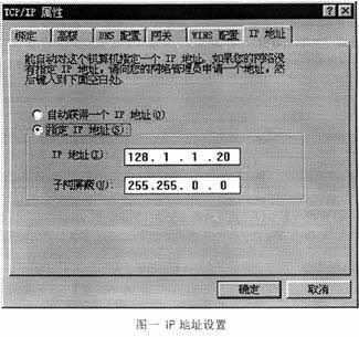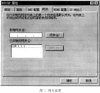 要进行Windows95的IP设置,可以打开控制面板中网络选项,在已安装的网络组件中查看TCP/IP协议的属性,其中有两栏同IP路由是密切相关的,这就是IP地址设置和网关设置:
