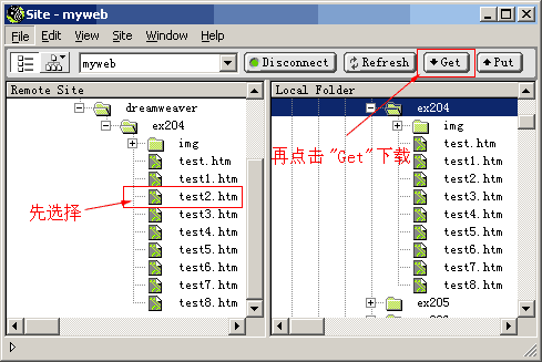 图1 直接点击工具栏上"Get"下载站点上的文件(和右键"Get"同样效果)