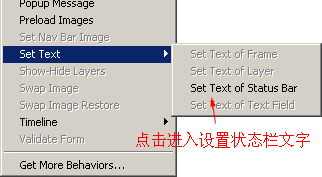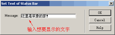 text->set text of status bar”命令(图2),然后在打开的文本框里输入需要的文字(图3),比如“这里是笨象的家!”。确定后,系统增加了一个onLoad事件,表示加载页面时状态栏显示这行字。