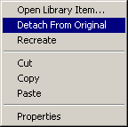 要修改页面的上库元素,必须先切断页面上的库项目与库之间的连接。在当前文档中选中这个表格,单击鼠标右键,选择“Detach from