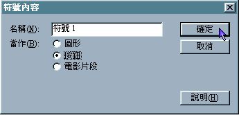 2. 給予這個符號一個名稱 , 並點選為「按鈕」性質.