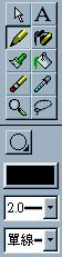 3. 點選右邊工具列中的「鉛筆」, 選擇「橢圓形」並設定線條粗細.