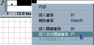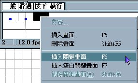 9. 同樣的 , 在「按下」的影格處 , 也就是 Down , 按滑鼠右鍵 , 選擇「插入關鍵畫面」選項 , 複製前一個影格畫面 ( 滑過 , 其實 Over 和 Down 都可以同時複製「一般」影格畫面 , 因為我們只是改變裡面的顏色 , 沒有改變形狀等 )