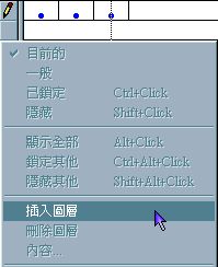 11. 按鈕圖層下新增一個圖層 , 在「鉛筆」圖示的下方小方塊 , 按滑鼠右鍵 , 選擇「插入圖層」, 此圖層是加上文字用的.