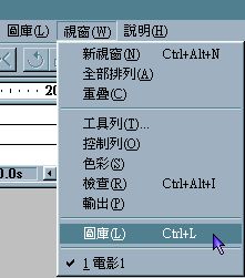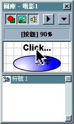 23. 出現一個圖庫的小視窗 , 裡面會列出您動畫中所建立和使用到的符號 , 滑鼠按住左鍵拖曳符號至主畫面中.