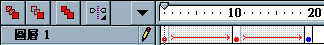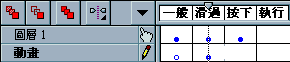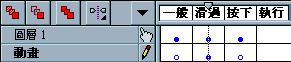 7. 圖層的名稱隨便給 , 在這裡我們給「動畫」好了 , 方便大家學習 ! 因為我們是想在按鈕「Over」滑過時 , 產生動畫的效果 , so 時間軸移至「滑過」影格位置 , 您也可以將它改成按鈕「Down」按下時 , 產生動畫的效果 , 那時間軸就移至「按下」影格位置囉 !