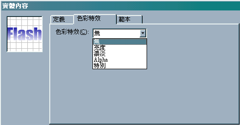 4. 您將可以看到「色彩特效」頁面 , 色彩特效初始值是「無」, 在下拉式選項中 , 可以看到以下選項 :