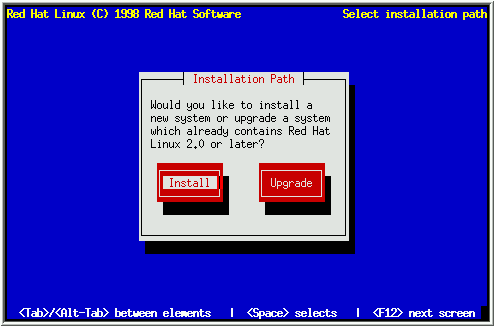 如果您想升级Red Hat Linux系统, 选择Upgrade.
