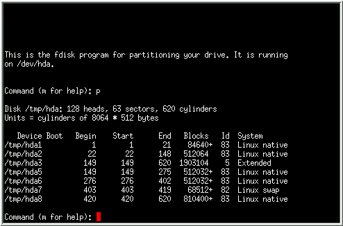 fdisk 包含一个简单而有用的在线帮助. 这是一点提示: