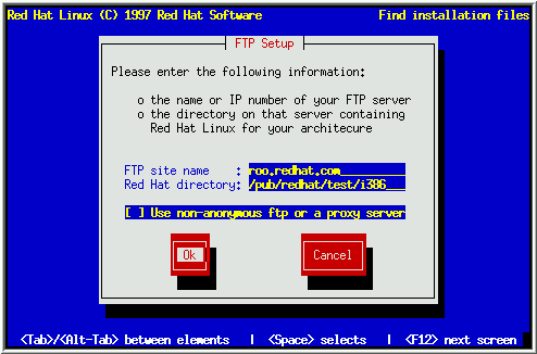 输入FTP站点的名称或者IP地址, 以及含有RedHat目录的目录名. 例如, 如果