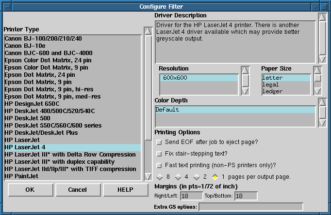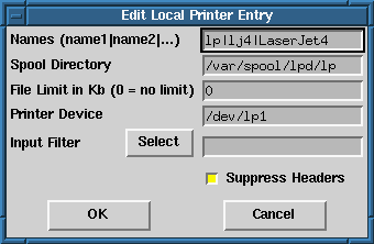 - Printer Device: 通常是/dev/lp1, 即打印机所连接的端口的设备文件.串口打印机