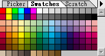 这是Photoshop预设的色盘样 本,若按下黑色叁角形,选 择 Load Swatches... 可由目录 中选取其他的色盘样本。 |